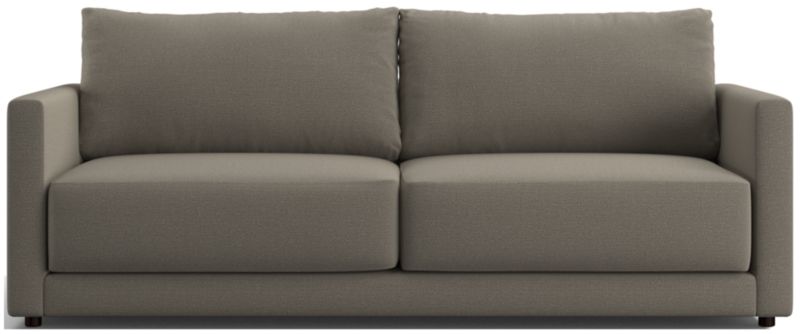 Everyone's invited to Gather. Clean-lined and current, our Gather sofa strikes the perfect balance between comfort and modern style. Scaled for smaller living spaces, the Gather sofa breaks new ground with a thin deck that puts all the focus on its boxy, extra-plush seat cushions that sit comfy but not too deep. Trim top-stitching and seamless armrests keep the look neat, not fussy. An exclusive Crate and Barrel design, the Gather sofa is made with engineered wood certified by the Forest Stewardship Council (FSC ®), the environmental gold standard for responsibly managed forests.