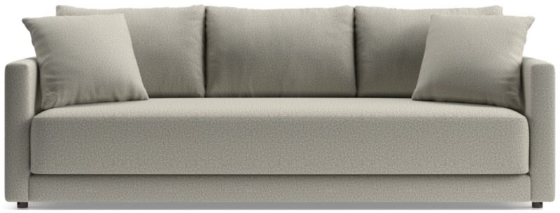Striking the perfect balance between comfort and modern style, Gather is clean-lined and current. The spacious grande sofa breaks new ground with a thin deck that puts all the focus on its boxy, extra-plush bench seat that sits comfy but not too deep. Trim top-stitching and seamless armrests keep the look neat, not fussy.