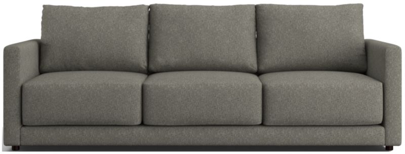 Striking the perfect balance between maximum comfort and modern style, our Gather sofa is clean-lined and current. Boxy, extra-plush seat cushions have inner-coil construction for maximum comfort and durability. Fiber-filled back cushions settle you in for the ultimate lounge.