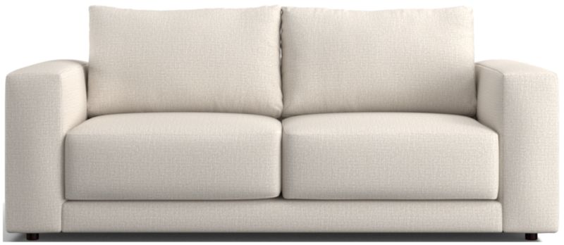Striking the perfect balance between maximum comfort and modern style, our Gather sofa is clean-lined and current. Boxy, extra-plush seat cushions have inner-coil construction for maximum comfort and durability. Fiber-filled back cushions settle you in for the ultimate lounge.