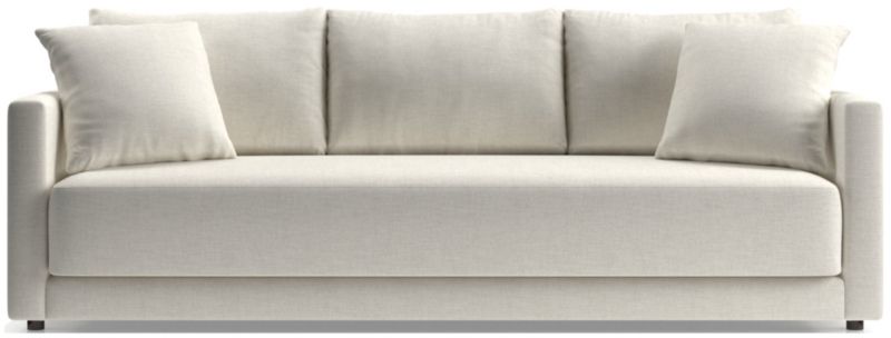 Striking the perfect balance between maximum comfort and modern style, our Gather sofa is clean-lined and current. Boxy, extra-plush seat cushions have inner-coil construction for maximum comfort and durability. Fiber-filled back cushions settle you in for the ultimate lounge.