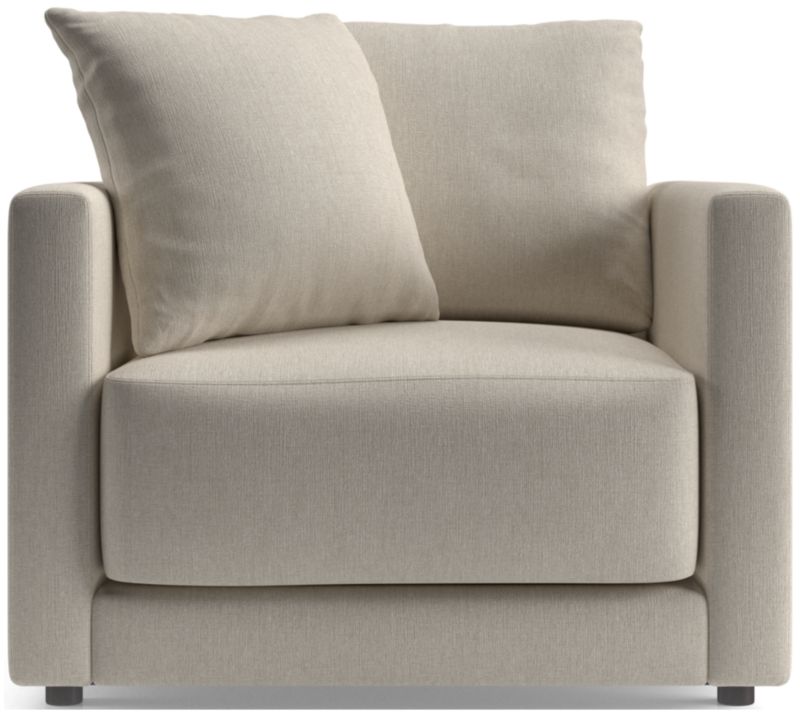 Striking the perfect balance between comfort and modern style, Gather is clean-lined and current. Sized for smaller spaces, the petite chair features a boxy, extra-plush seat cushion made with inner-coil construction for maximum comfort and durability. A fiber-filled back cushion settles you in for the ultimate lounge.