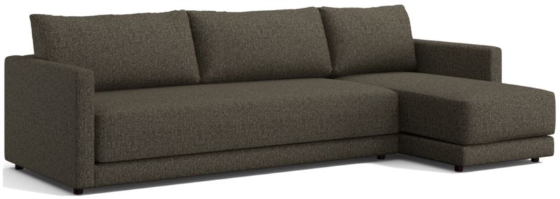 Striking the perfect balance between maximum comfort and modern style, our Gather sectional sofa is clean-lined and current. Deep-seated cushions are boxy and extra-plush made with inner-coil construction for maximum comfort and durability. Fiber-filled back cushions settle you in for the ultimate lounge.