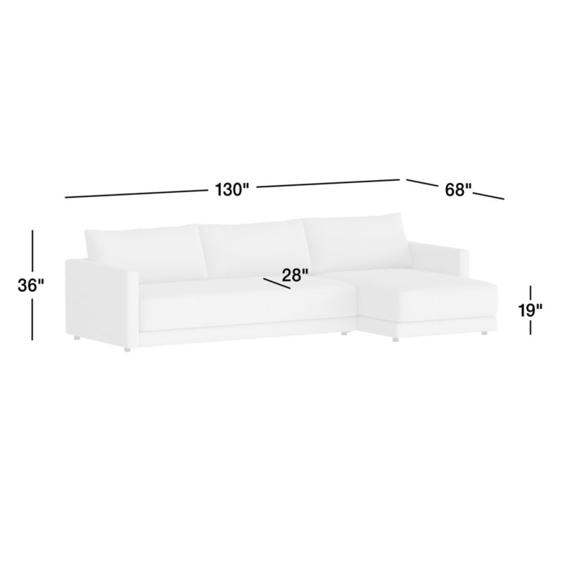 Gather Deep 2-Piece Bench Sectional Sofa with Extra Wide Chaise Lounge26height130width68depthMeasurements are in inches.