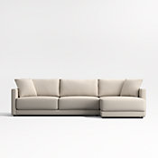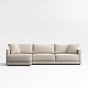Everyone's invited to Gather. Clean-lined and current, our Gather sectional seating strikes the perfect balance between comfort and modern style. The left-arm chaise and right-arm sofa break new ground with thin decks that put all the focus on the boxy, extra-plush seat cushions. Trim top-stitching and seamless armrests keep the look neat, not fussy. An exclusive Crate and Barrel design, the Gather 2-Piece Left Arm Chaise Sectional is made with engineered wood certified by the Forest Stewardship Council (FSC ®), the environmental gold standard for responsibly managed forests.