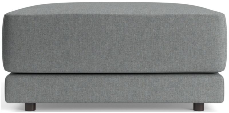 Designed to coordinate with our clean-lined and current Gather collection, the upholstered ottoman strikes the perfect balance between comfort and modern style. Resting on a slim base, the over-sized cushioned top makes it an ultra-comfy footrest or extra perch. Scaled a little bit larger, the ottoman is roomy enough to serve as a casual coffee table.