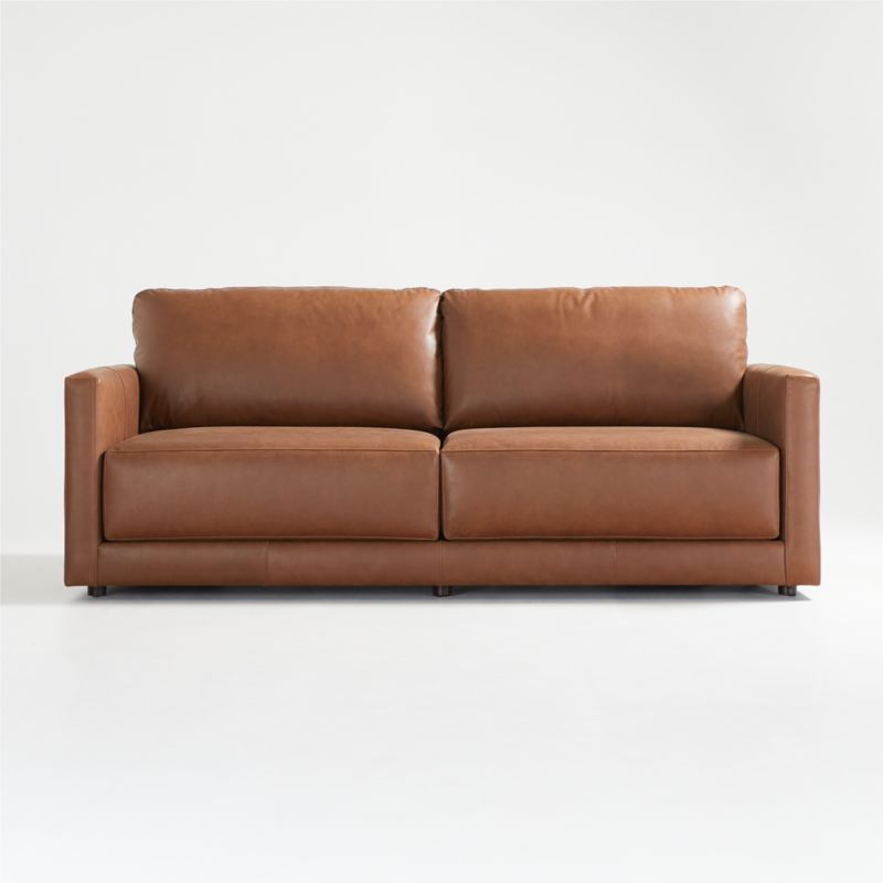 Gather Wood Base 89" Leather Sofa