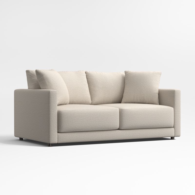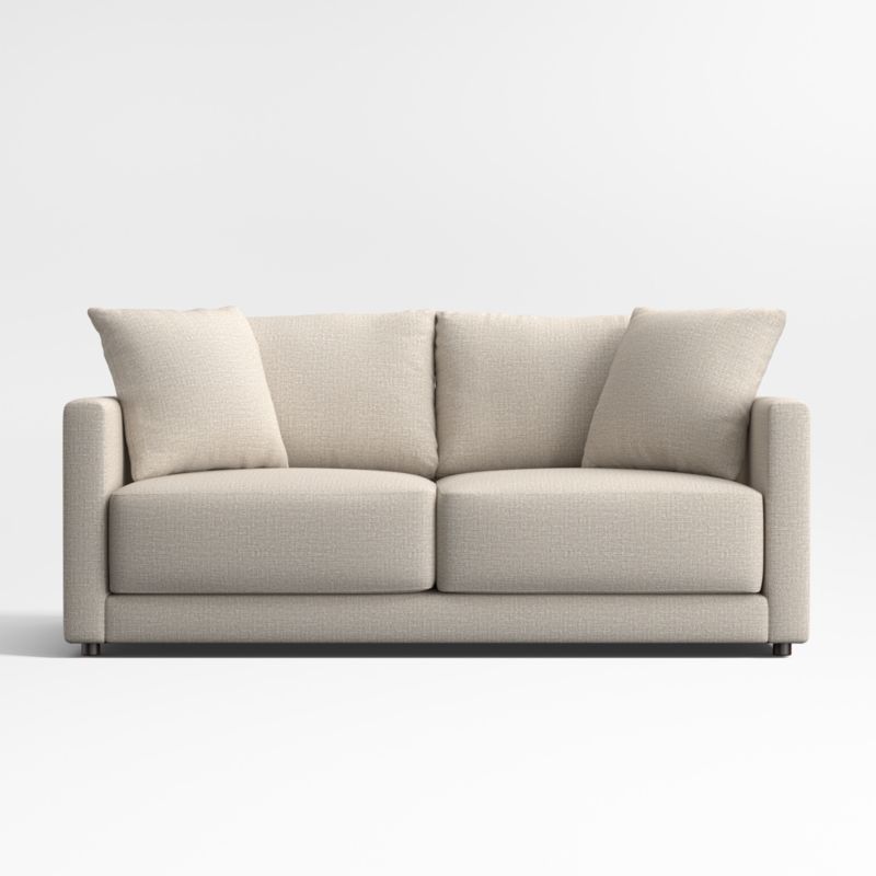 Trim top-stitching and seamless armrests keep the look neat, not fussy. An exclusive Crate and Barrel design, the Gather apartment sofa is made with engineered wood certified by the Forest Stewardship Council (FSC ®), the environmental gold standard for responsibly managed forests.