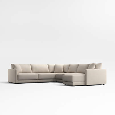 Everyone's invited to Gather. Clean-lined and current, our Gather sectional seating strikes the perfect balance between comfort and modern style. The armless loveseat breaks new ground with a thin deck that puts all the focus on its boxy, extra-plush seat cushions. Trim top-stitching adds to the loveseat's neat yet never fussy look. An exclusive Crate and Barrel design, the Gather armless loveseat is made with engineered wood certified by the Forest Stewardship Council (FSC ®), the environmental gold standard for responsibly managed forests.