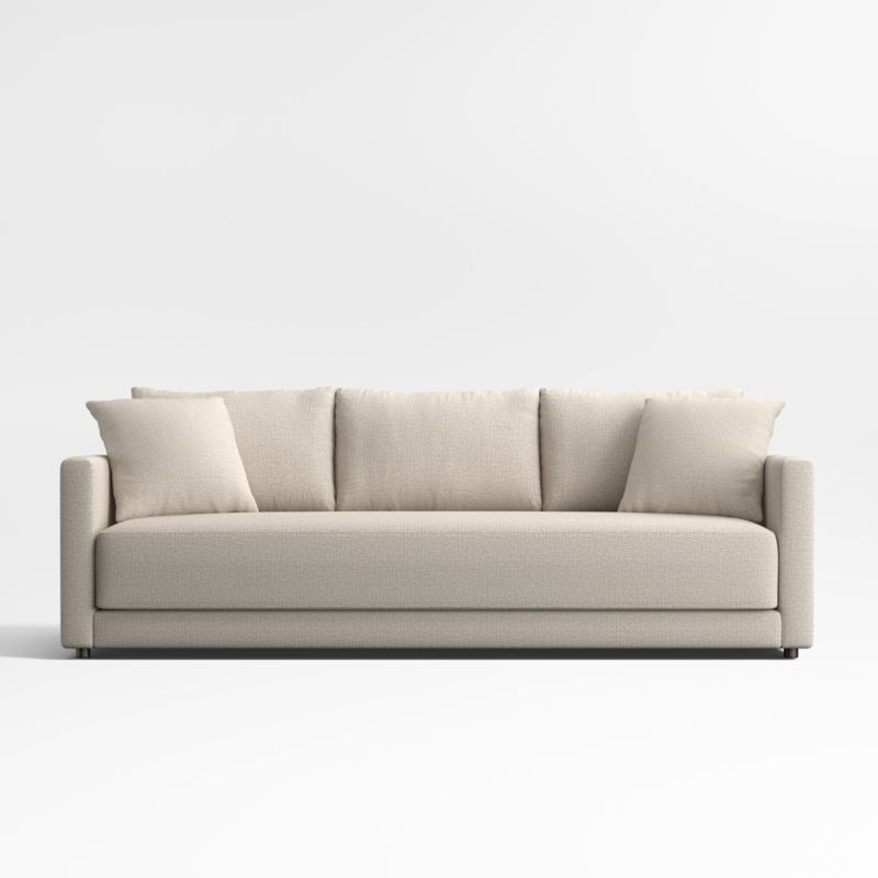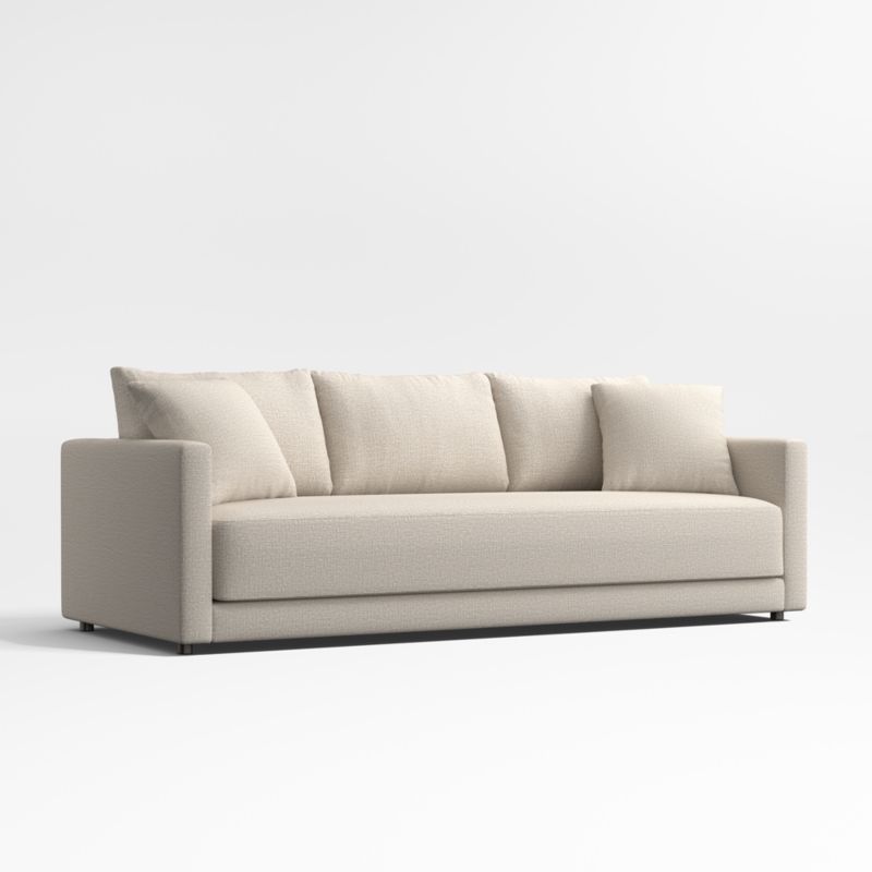 Striking the perfect balance between comfort and modern style, Gather is clean-lined and current. The spacious grande sofa breaks new ground with a thin deck that puts all the focus on its boxy, extra-plush bench seat. Trim top-stitching and seamless armrests keep the look neat, not fussy.