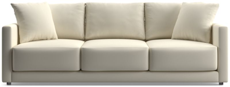 Striking the perfect balance between maximum comfort and modern style, our Gather sofa is clean-lined and current. The deep-seated sofa features boxy, extra-plush seat cushions made with inner-coil construction for maximum comfort and durability. Fiber-filled back cushions settle you in for the ultimate lounge.