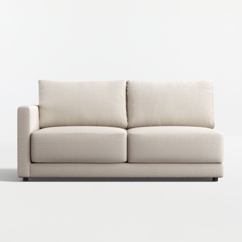 Everyone's invited to Gather. Clean-lined and current, our Gather sectional seating strikes the perfect balance between comfort and modern style. The left-arm apartment sofa breaks new ground with a thin deck that puts all the focus on its boxy, extra-plush seat cushions that sit deep and comfy. Trim top-stitching and a seamless armrest keep the look neat, not fussy.