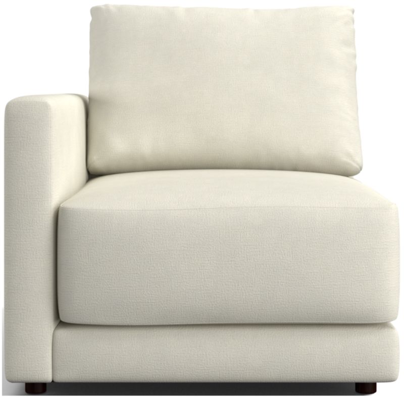 Everyone's invited to Gather. Clean-lined and current, our Gather sectional seating strikes the perfect balance between comfort and modern style. The left-arm chair breaks new ground with a thin deck that puts all the focus on its boxy, extra-plush seat cushion that sits deep and comfy. Trim top-stitching and a seamless armrest keep the look neat, not fussy.