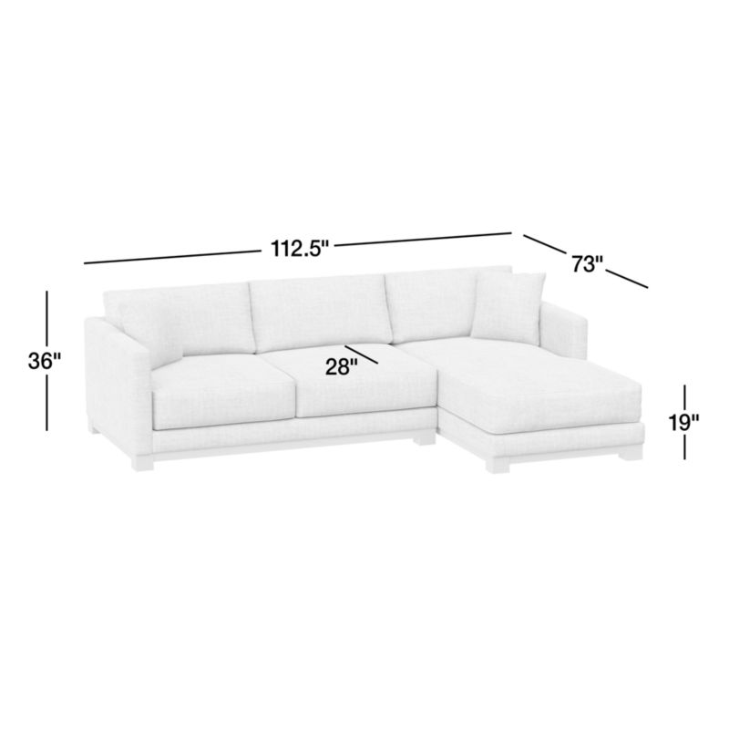 Gather Deep Wood Base 2-Piece Sectional Sofa with Chaise Lounge26height112.5width73depthMeasurements are in inches.