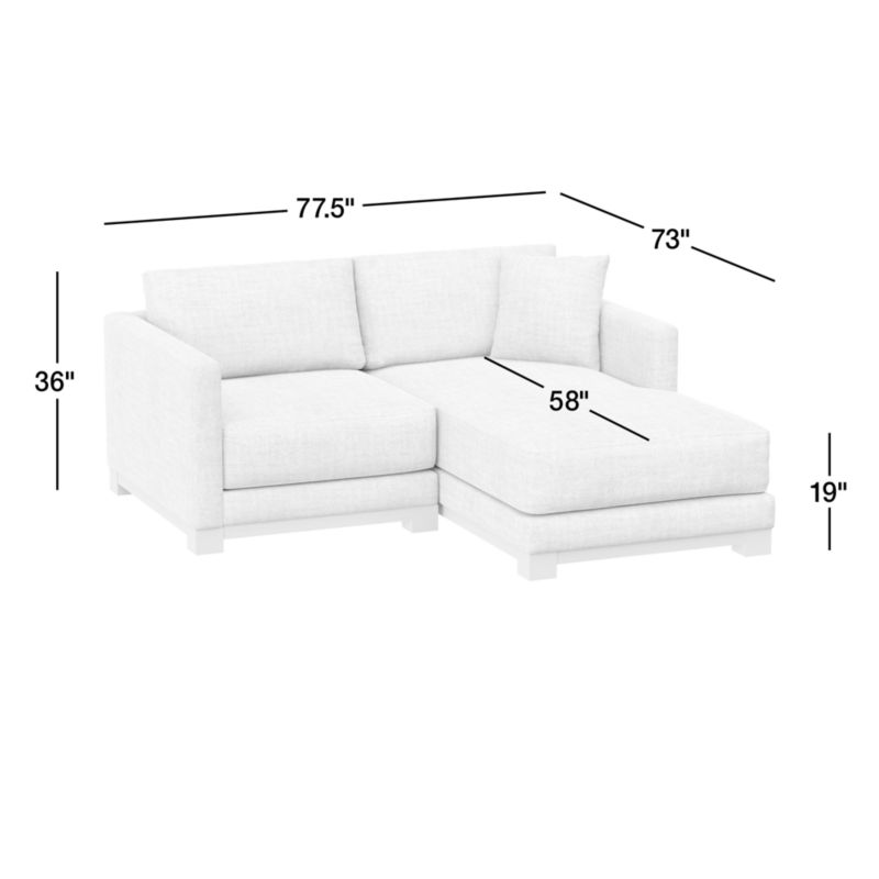 Gather Deep Wood Base 2-Piece Small Space Sectional Sofa with Chaise Lounge26height77.5width73depthMeasurements are in inches.