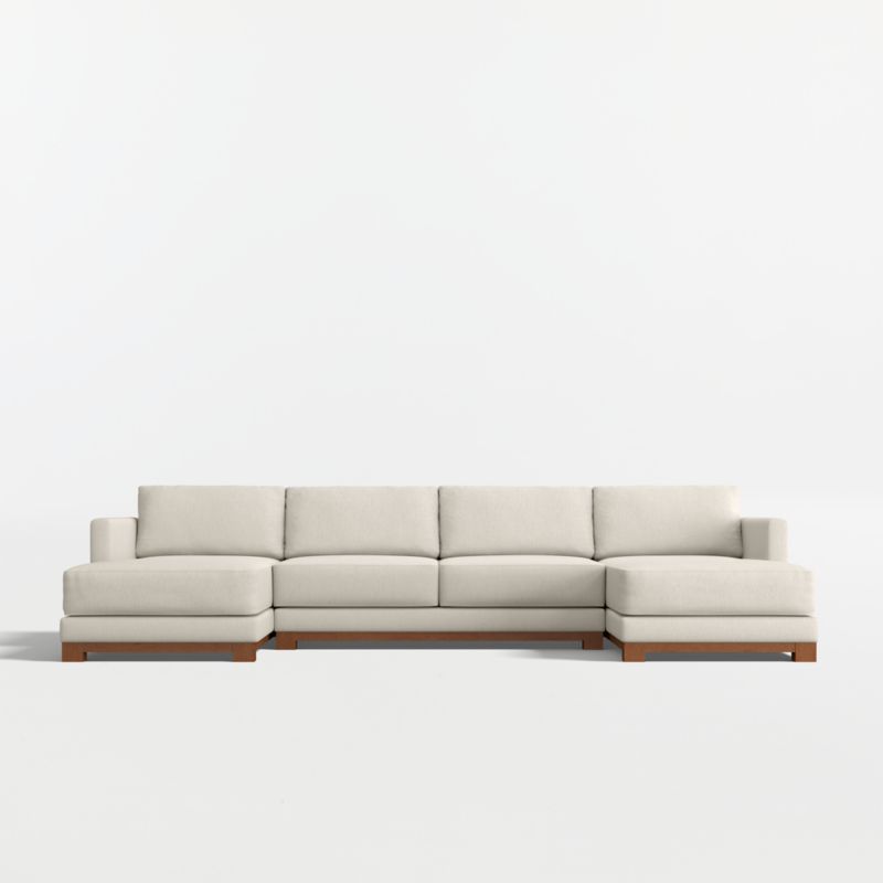 Gather Deep Wood Base 3-Piece U-Shaped Sectional Sofa with Double Chaise Lounge