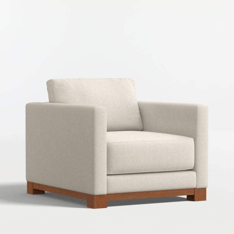 Striking the perfect balance between comfort and modern style, Gather is clean-lined and current. Accented with a wood base, the deep-seated chair sits deep with a boxy, extra-plush cushion made with inner-coil construction for maximum comfort and durability. A fiber-filled back cushion settles you in for the ultimate lounge.