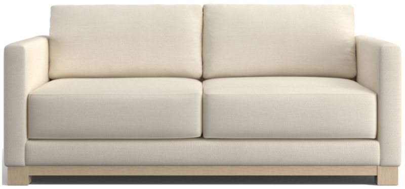 Striking the perfect balance between maximum comfort and modern style, our Gather sofa is clean-lined and current. Anchored by a wood base, the deep-seated sofa features a boxy, extra-plush seat made with inner-coil construction for maximum comfort and durability. Fiber-filled back cushions settle you in for the ultimate lounge.