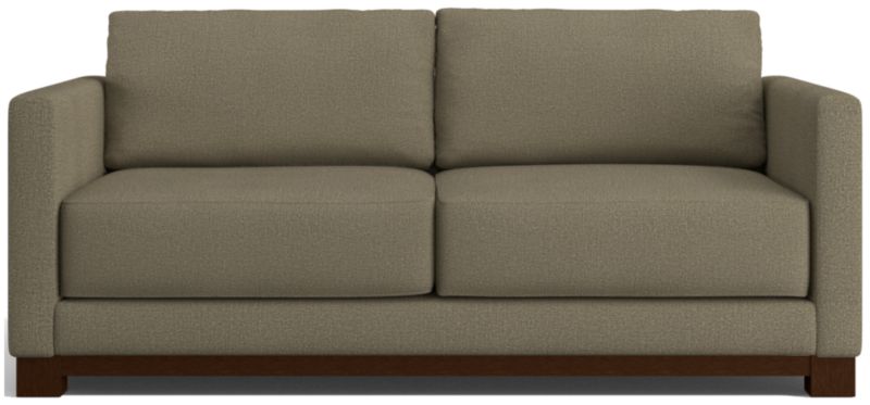 Striking the perfect balance between maximum comfort and modern style, our Gather sofa is clean-lined and current. Anchored by a wood base, the deep-seated sofa features a boxy, extra-plush seat made with inner-coil construction for maximum comfort and durability. Fiber-filled back cushions settle you in for the ultimate lounge.