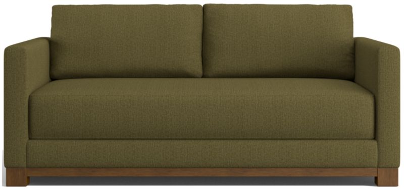 Striking the perfect balance between maximum comfort and modern style, our Gather sofa is clean-lined and current. Anchored by a wood base, the deep-seated sofa features a boxy, extra-plush seat made with inner-coil construction for maximum comfort and durability. Fiber-filled back cushions settle you in for the ultimate lounge.