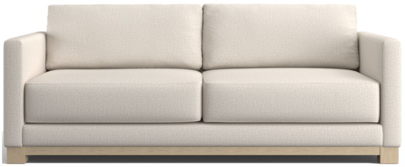 Striking the perfect balance between maximum comfort and modern style, our Gather sofa is clean-lined and current. Anchored by a wood base, the deep-seated sofa features a boxy, extra-plush seat made with inner-coil construction for maximum comfort and durability. Fiber-filled back cushions settle you in for the ultimate lounge.