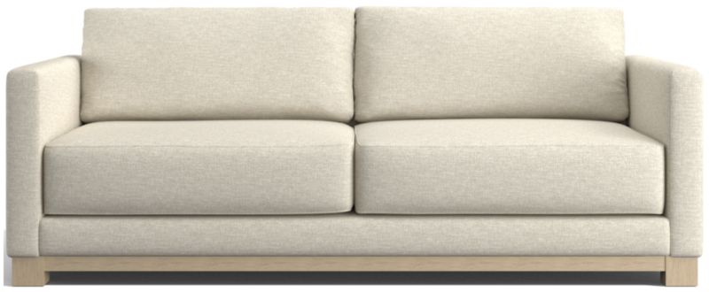Striking the perfect balance between maximum comfort and modern style, our Gather sofa is clean-lined and current. Anchored by a wood base, the deep-seated sofa features a boxy, extra-plush seat made with inner-coil construction for maximum comfort and durability. Fiber-filled back cushions settle you in for the ultimate lounge.