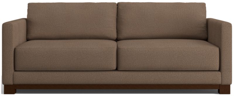 Striking the perfect balance between maximum comfort and modern style, our Gather sofa is clean-lined and current. Anchored by a wood base, the deep-seated sofa features a boxy, extra-plush seat made with inner-coil construction for maximum comfort and durability. Fiber-filled back cushions settle you in for the ultimate lounge.
