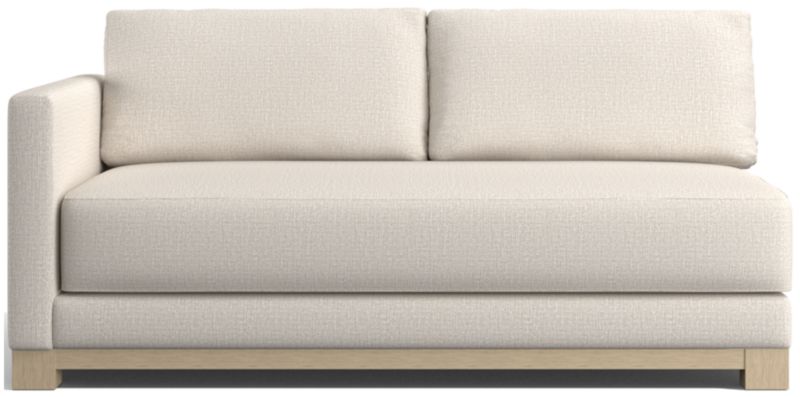 Everyone's invited to Gather. Clean-lined and current, our Gather sectional sofa strikes the perfect balance between comfort and modern style. Anchored by a natural wood base, the deep-seated left-arm sofa welcomes you with an extra-plush bench seat cushion designed with inner-coil construction for maximum comfort and durability. Trim topstitching keeps the look neat, not fussy. Combine the left-arm bench sofa with other components to create a sectional to suit your space.