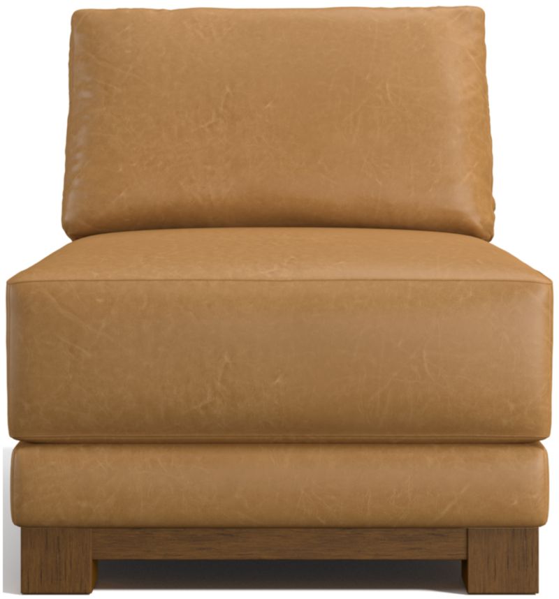 Gather Deep Wood Base Leather Armless Chair Sectional Piece26"Hheight30"Wwidth43"DdepthMeasurements are in inches.