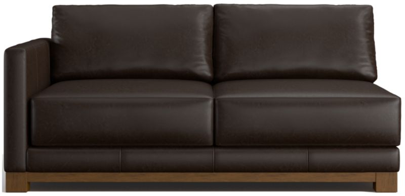 Everyone's invited to Gather. Clean-lined and current, our Gather sectional collection strikes the perfect balance between comfort and modern style. Anchored by a natural wood base, the deep-seated left-arm sofa welcomes you with extra-plush seat cushions designed with inner-coil construction for maximum comfort and durability. Rich with natural markings and subtle color variations , the exquisite leather upholstery lends a dramatic look, supersmooth feel and high-sheen finish that makes Gather glow. Trim topstitching and a knife-tailored throw pillow keep the look neat, not fussy. Combine the left-arm sofa with other components to create a sectional to suit your space.