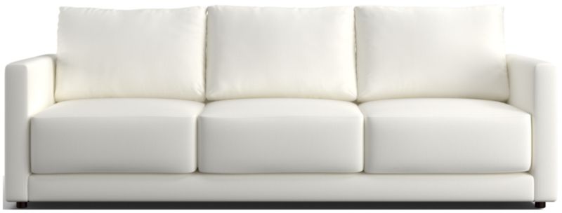 Striking the perfect balance between maximum comfort and modern style, our Gather sofa is clean-lined and current. Boxy, extra-plush seat cushions have inner-coil construction for maximum comfort and durability. Fiber-filled back cushions settle you in for the ultimate lounge.