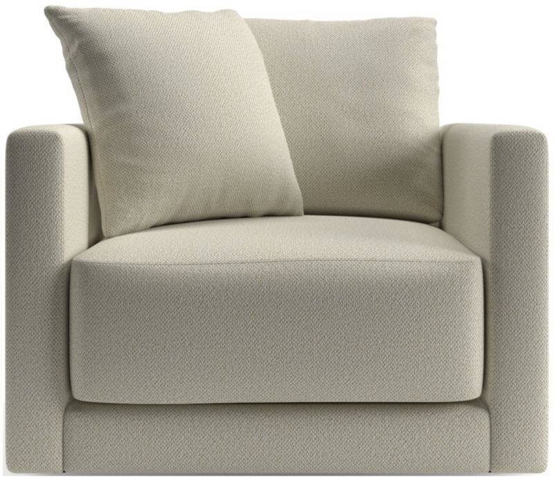 Striking the perfect balance between comfort and modern style, Gather is clean-lined and current. Sized for smaller spaces, the petite swivel chair features a boxy, extra-plush seat cushion made with inner-coil construction for maximum comfort and durability. A fiber-filled back cushion settles you in for the ultimate lounge, while the 360-degree swivel gives you a sweeping view of the room.