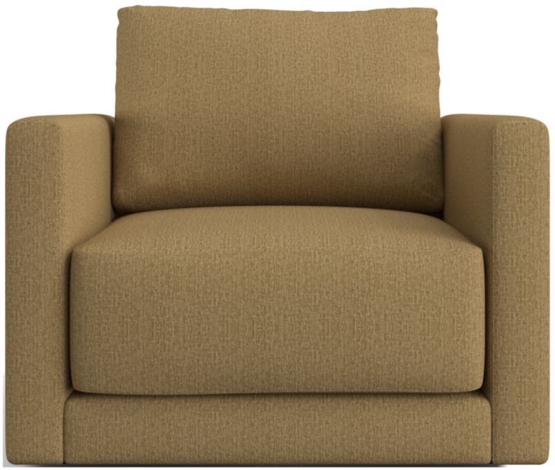 Striking the perfect balance between comfort and modern style, Gather is clean-lined and current. Sized for smaller spaces, the petite swivel chair features a boxy, extra-plush seat cushion made with inner-coil construction for maximum comfort and durability. A fiber-filled back cushion settles you in for the ultimate lounge, while the 360-degree swivel gives you a sweeping view of the room.