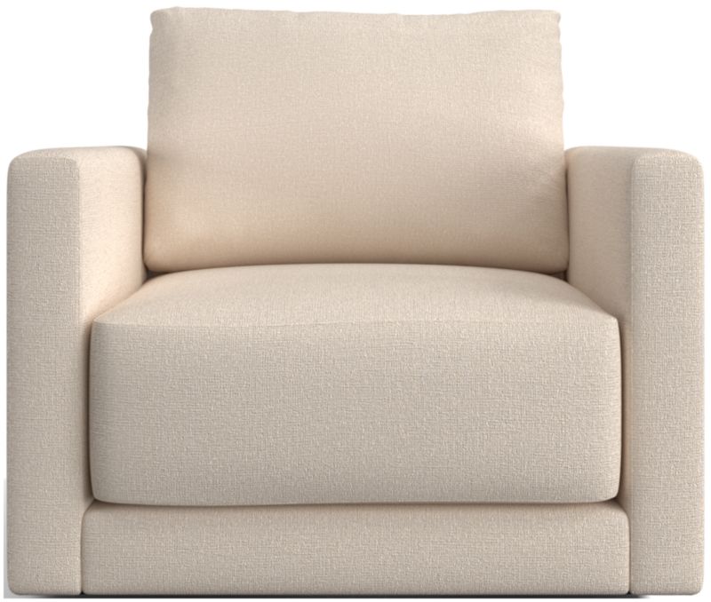 Striking the perfect balance between comfort and modern style, Gather is clean-lined and current. Sized for smaller spaces, the petite swivel chair features a boxy, extra-plush seat cushion made with inner-coil construction for maximum comfort and durability. A fiber-filled back cushion settles you in for the ultimate lounge, while the 360-degree swivel gives you a sweeping view of the room.