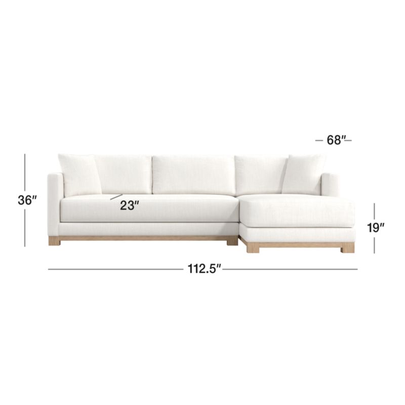 Gather Wood Base 2-Piece Bench Sectional Sofa with Chaise Lounge26"Hheight112.5"Wwidth68"DdepthMeasurements are in inches.