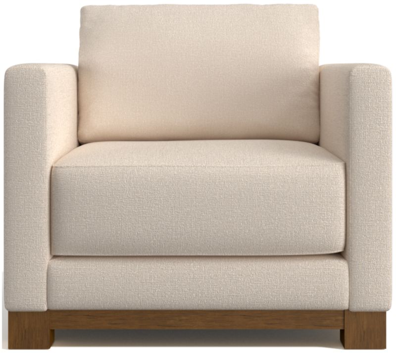 Striking the perfect balance between comfort and modern style, Gather is clean-lined and current. Sized for smaller spaces, the wood-accented chair features a boxy, extra-plush seat cushion made with inner-coil construction for maximum comfort and durability. A fiber-filled back cushion settles you in for the ultimate lounge.