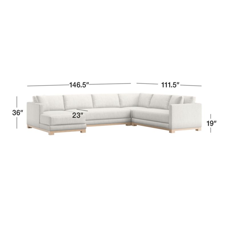 Gather Wood Base 4-Piece L-Shaped Bench Sectional Sofa with Chaise Lounge26height146.5width111.5depthMeasurements are in inches.