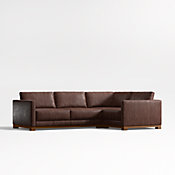 Gather Wood Base 4-Piece L-Shaped Leather Sectional Sofa with Chaise Lounge