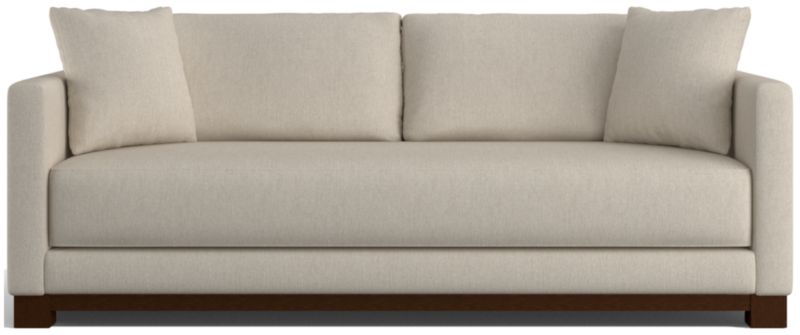 Striking the perfect balance between maximum comfort and modern style, our Gather sofa is clean-lined and current. Anchored by a wood base, the sofa features a boxy, extra-plush seat made with inner-coil construction for maximum comfort and durability. Fiber-filled back cushions settle you in for the ultimate lounge.
