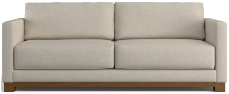 Striking the perfect balance between maximum comfort and modern style, our Gather sofa is clean-lined and current. Anchored by a wood base, the sofa features a boxy, extra-plush seat made with inner-coil construction for maximum comfort and durability. Fiber-filled back cushions settle you in for the ultimate lounge.