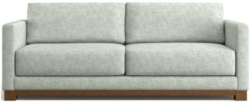 Striking the perfect balance between maximum comfort and modern style, our Gather sofa is clean-lined and current. Anchored by a wood base, the sofa features a boxy, extra-plush seat made with inner-coil construction for maximum comfort and durability. Fiber-filled back cushions settle you in for the ultimate lounge.
