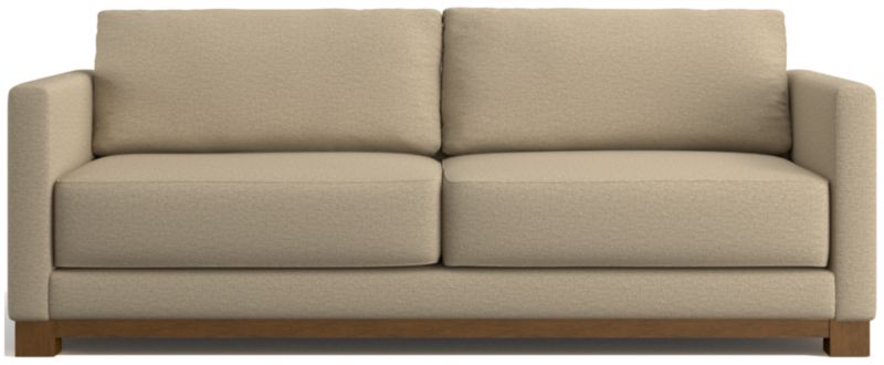 Striking the perfect balance between maximum comfort and modern style, our Gather sofa is clean-lined and current. Anchored by a wood base, the sofa features a boxy, extra-plush seat made with inner-coil construction for maximum comfort and durability. Fiber-filled back cushions settle you in for the ultimate lounge.