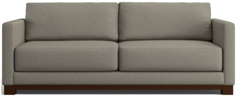 Striking the perfect balance between maximum comfort and modern style, our Gather sofa is clean-lined and current. Anchored by a wood base, the sofa features a boxy, extra-plush seat made with inner-coil construction for maximum comfort and durability. Fiber-filled back cushions settle you in for the ultimate lounge.
