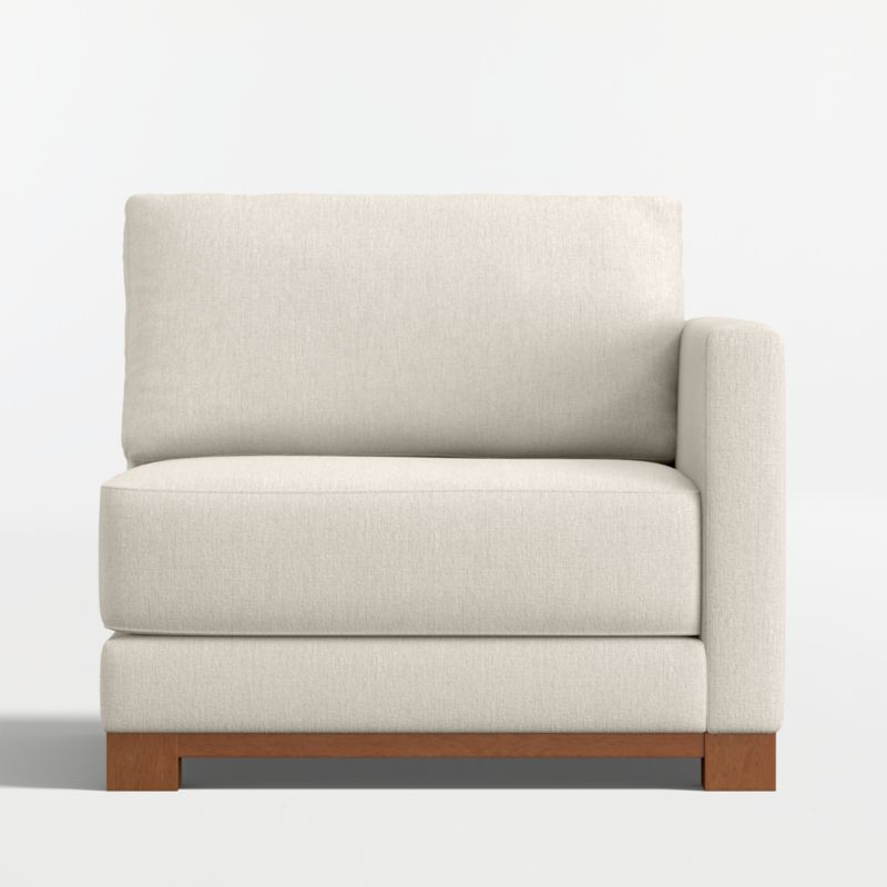 Striking the perfect balance between maximum comfort and modern style, our Gather sectional collection is clean-lined and current. Anchored by a wood base, the sectional pieces feature boxy, extra-plush seat cushions made with inner-coil construction for maximum comfort and durability. Fiber-filled back cushions settle you in for the ultimate lounge. Combine sectional pieces to create custom seating to suit your space.