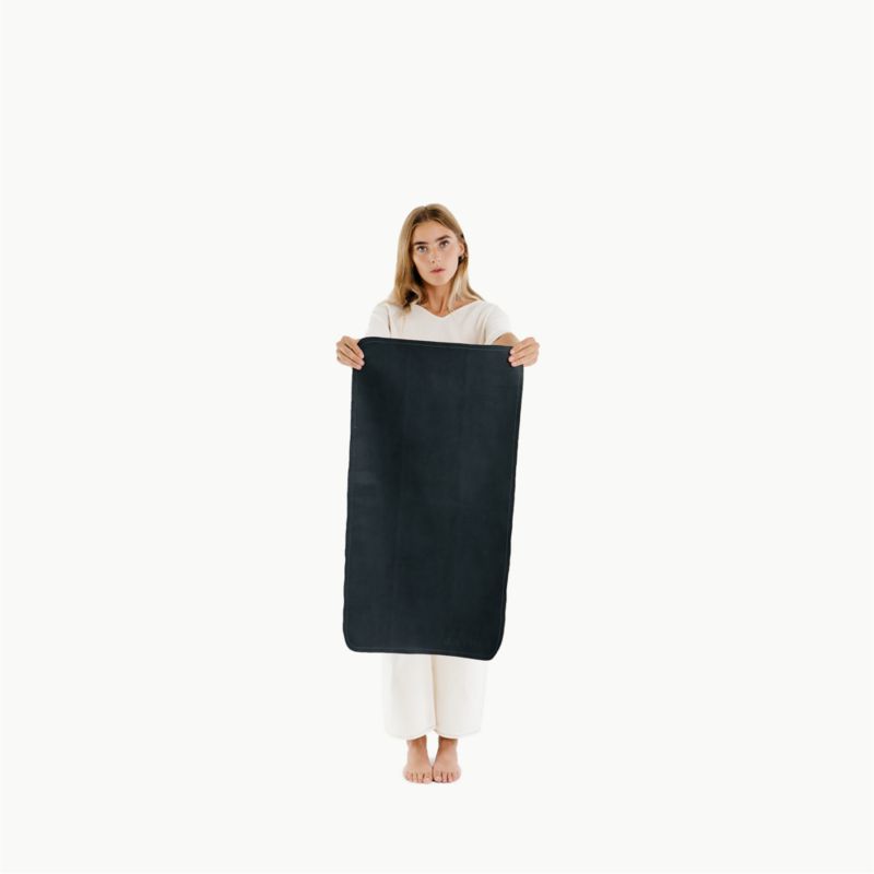 Accent your decor with an elevated playmat with the look and feel of premium leather. Crafted of black vegan leather that reverses to flocked suede, the modern mat folds compactly so you can easily tote it with you on playdates, visits with friends and vacations. The water-resistant mat cleans up with a quick wipe, making it ideal for use as a changing mat at home or on the go.