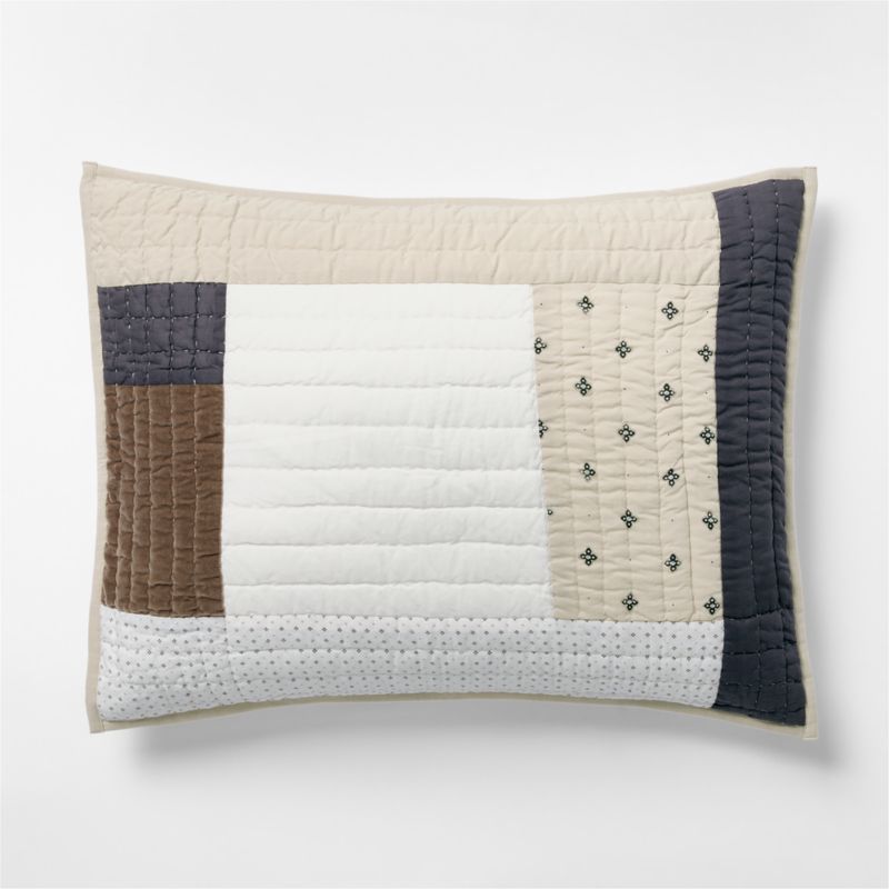 Gee's Bend Around The Bend Organic Cotton Taupe/Midnight Navy Quilted Bed Pillow Sham