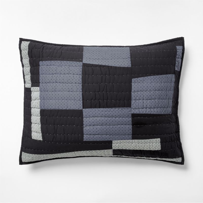 This heirloom-quality pillow sham was designed exclusively for Crate & Barrel by Andrea Pettway-Williams and Cheyenne Pettway, two members of the legendary Gee's Bend quilting community. The mother-daughter duo have been quilting all of their lives, from matching fabric as children to designing textile masterpieces as they honed their skills. Mixing solids and charming vintage-inspired prints in a palette of blue hues, the organic cotton voiles and slubbed weaves add texture to the dynamic checkerboard pattern. Hand-quilted by talented artisans based on the quilters' original designs, this sham and its coordinating quilt (sold separately) brings a work of art—and a piece of history—home.