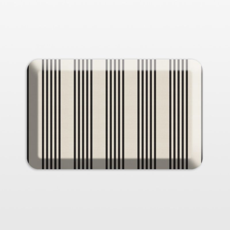 Timeless ticking stripes in black on off-white pattern this fabric-topped kitchen mat with a fresh-yet-classic look. Thick and supportive to eliminate fatigue as you cook and clean, the energy-return foam creates cloud-like comfort and reduces pain as you chop vegetables, roll out cookies and wash dishes. Thanks to its curl-free beveled edges and non-slip bottom, the mat helps create a safe workspace in the kitchen or laundry room. It can also be paired with a standing desk for a more comfortable work-from-home day. Our exclusive stain- and water-resistant mat cleans up easily with a quick swipe of a soapy cloth.