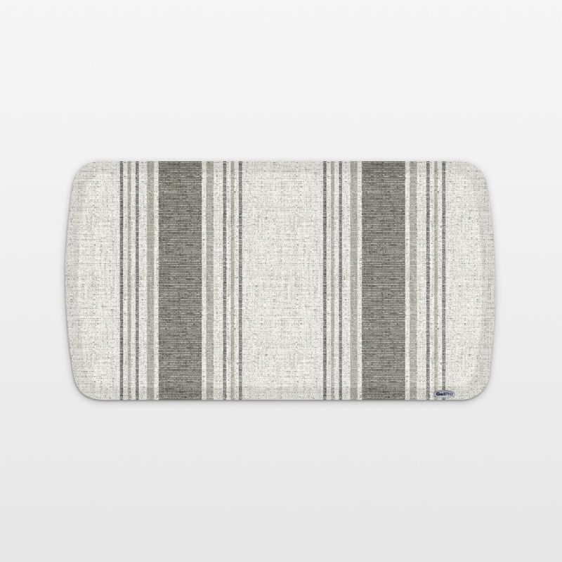 Finished with linen-like fabric striped in white and shades of grey, this elegant kitchen mat eliminates fatigue as you cook and clean. Thick and supportive, the mat layers gel and energy-return foam to help create cloud-like comfort and reduce pain as you chop vegetables, roll out cookies and wash dishes. Thanks to its curl-free beveled edges and non-slip bottom, the grey-striped kitchen mat helps create a safe workspace in the kitchen or laundry room—or paired with a standing desk. The stain- and water-resistant mat cleans up easily with a quick swipe of a soapy cloth.