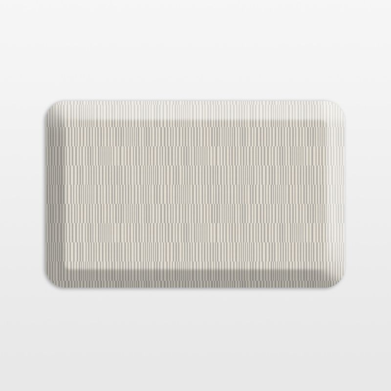 Staggered stripes in grey on cream pattern this fabric-topped kitchen mat made just for us. Thick and supportive to eliminate fatigue as you cook and clean, the energy-return foam creates cloud-like comfort and reduces pain as you chop vegetables, roll out cookies and wash dishes. Thanks to its curl-free beveled edges and non-slip bottom, the mat helps create a safe workspace in the kitchen or laundry room. It can also be paired with a standing desk for a more comfortable work-from-home day. Our exclusive stain- and water-resistant mat cleans up easily with a quick swipe of a soapy cloth.